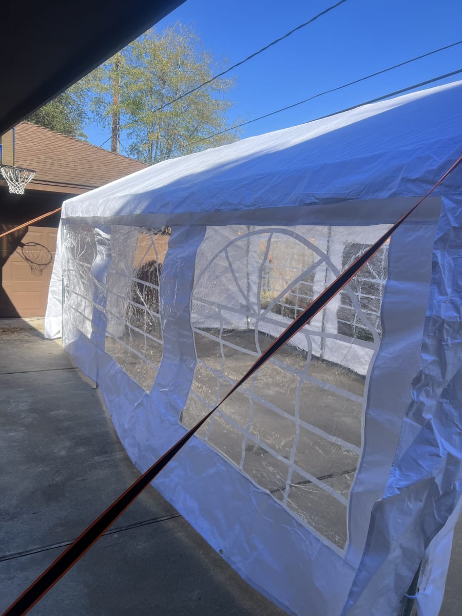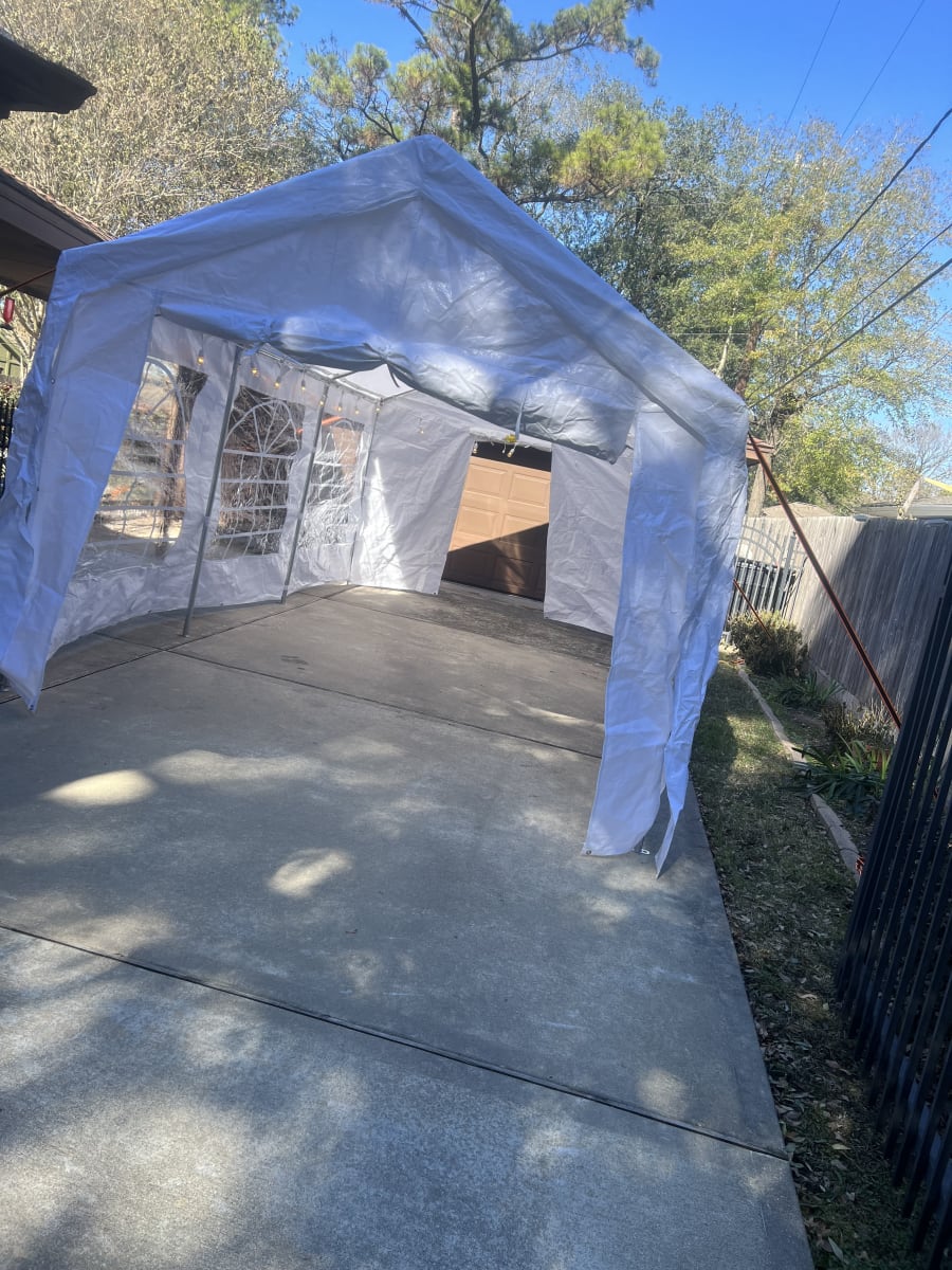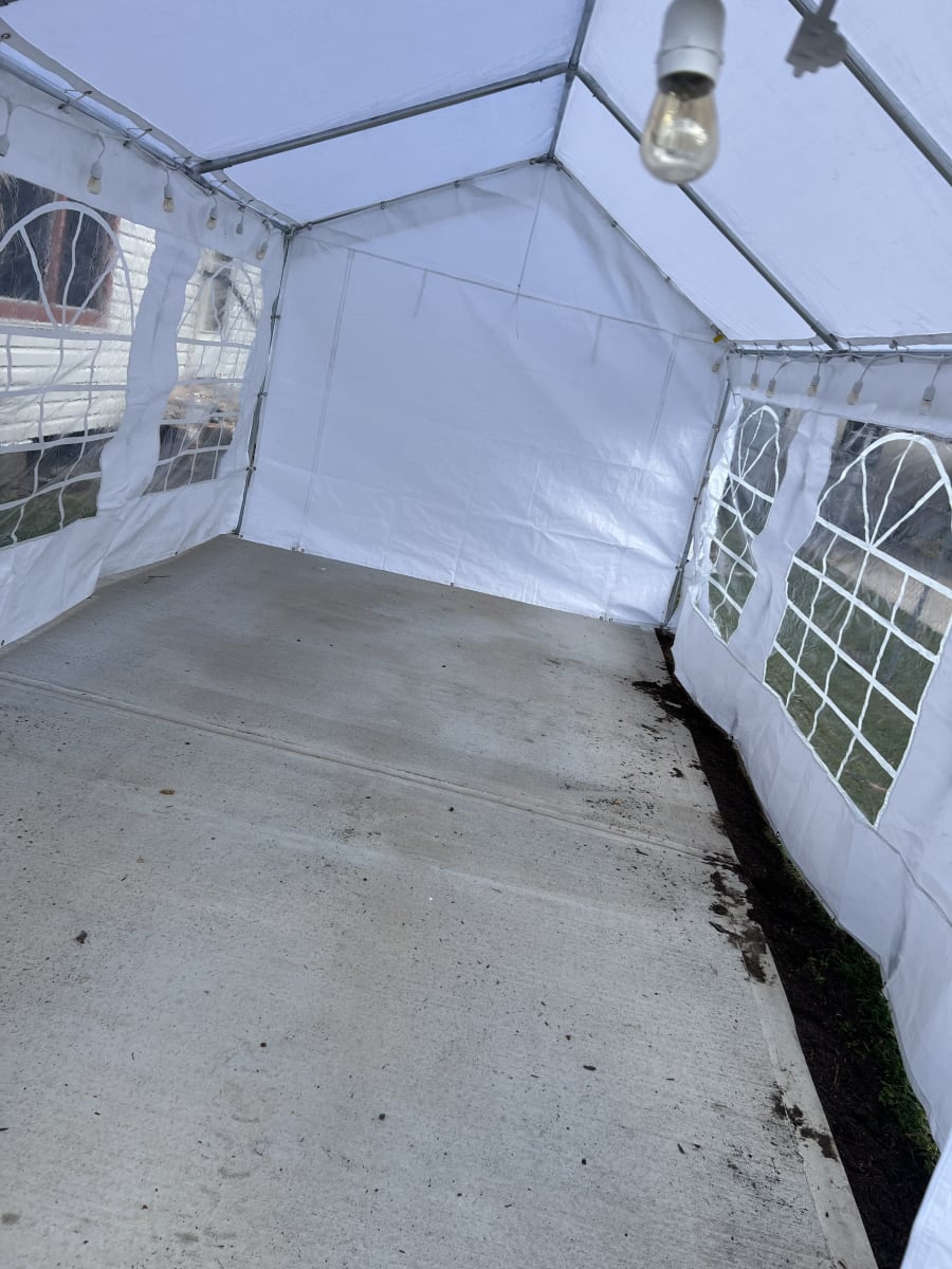 This is our 10x20 enclosed commercial pop up tent. It is designed for both indoor and outdoor use. It measures 10 feet wide and 20 feet long, providing ample space for various activities such as camping, outdoor events, and trade shows. The tent features windows and walls that fully enclose the interior, offering protection from the elements such as wind, rain, and sun. The tent is made from durable materials, such as waterproof fabric and sturdy metal poles, ensuring it can withstand various weather conditions. The enclosed design allows for privacy and a controlled environment, making it suitable for a wide range of activities.This Tent can be setup virtually anyway on grass or even hard surfaces. Lights can also be added at an additional cost.