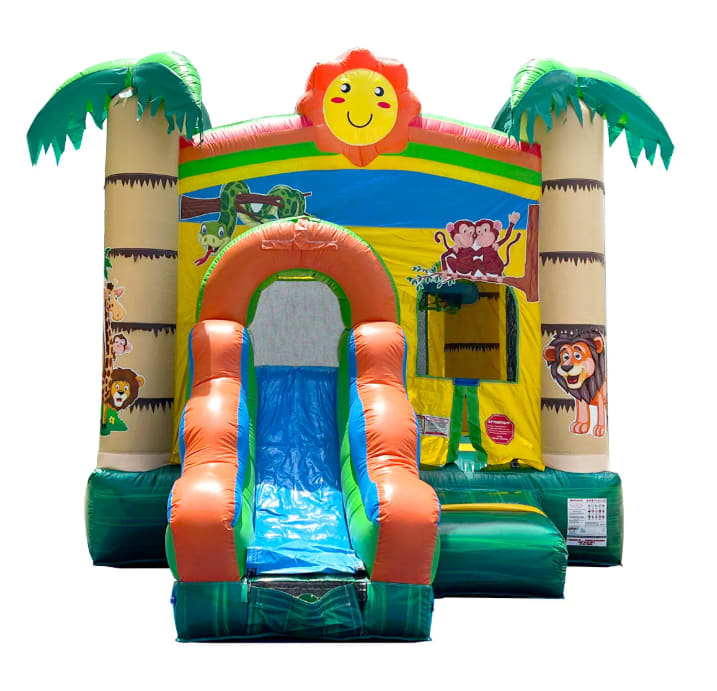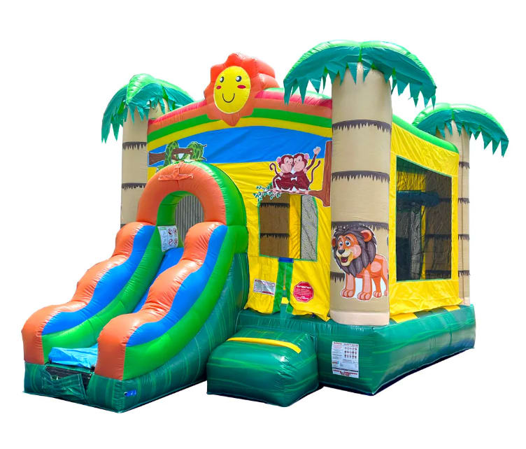 Don't miss out on the most popular bounce house combo in the area. Reserve your 13x16 Tropical Jungle Castle Bounce House Combo with Slide rental today and guarantee hours of laughter and fun for your guests. Serving a wide range of locations, we are your trusted partner for unforgettable celebrations!