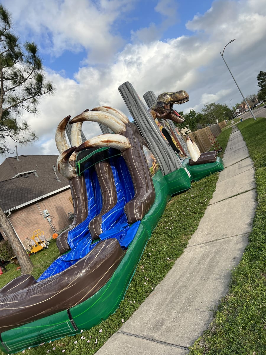 Whether it's a birthday party, school fair, community gathering, or family reunion, the Jurassic Island Wet/Dry Bounce House Combo with Dual Slide and Hoop for rent in Pasadena Tx, South Houston Tx, Houston Tx, and all surrounding areas adds a unique twist that will have everyone talking! 🥳