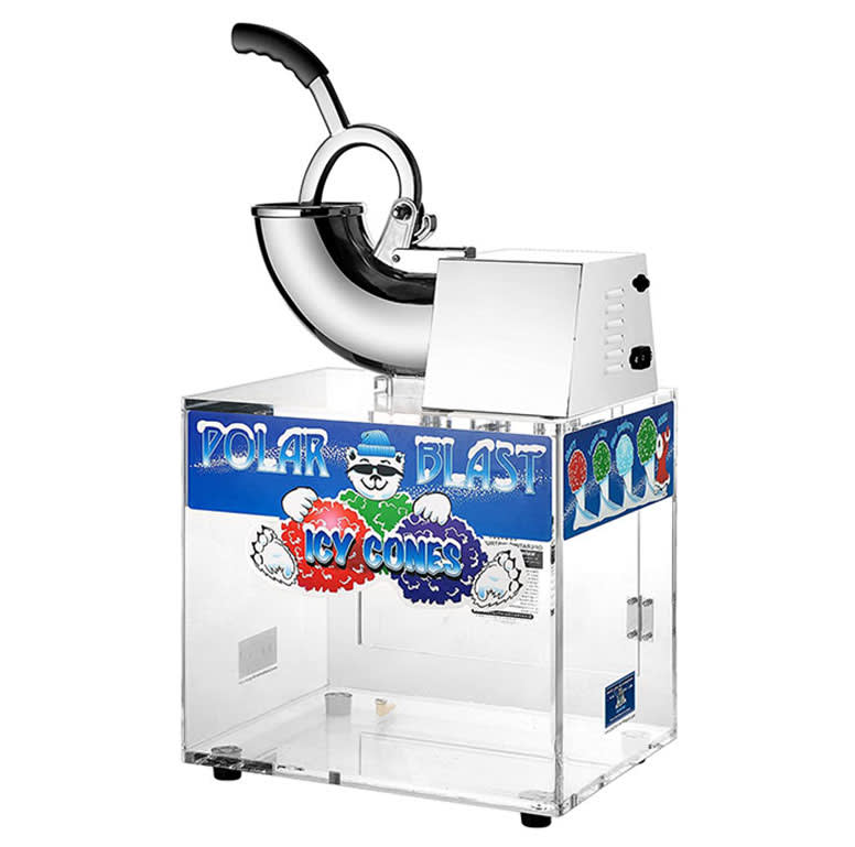 This is our commercial tabletop snow-cone machine machine. This machines comes with servings for 50 people. Perfect for smaller parties with limited yard areas or play space. It can be setup inside or outside as long as its bigger then the dimensions mentioned above. If the machine is setup outside we ask that you watch for children and the weather. The machine will also be setup in the area that the customer desires. The ice is NOT included. However 2 eight pound bags of ice will make 50 servings.