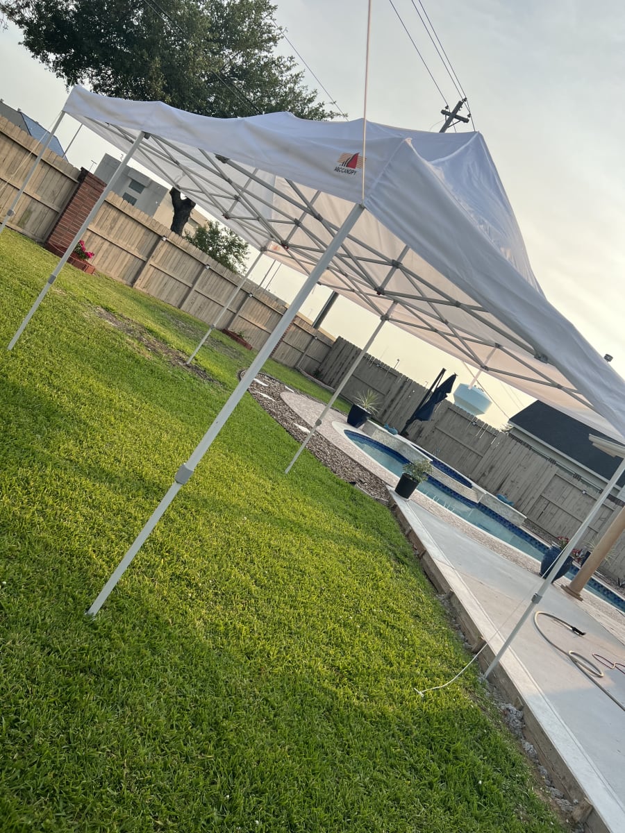 Our 10x20 commercial pop up tent ia a open tent designed for indoor and outdoor use. It measures 10 feet in width and 10 feet in length, providing a large open space for various activities such as camping, picnics, and outdoor events. Unlike enclosed tents, open tents have no walls, making them ideal for warm weather and allowing for maximum ventilation. The tent is made from durable materials, such as waterproof fabric and sturdy metal poles, to ensure it can withstand various weather conditions. The open design provides a more relaxed atmosphere, making it suitable for gatherings with friends and family. With our 10x20 open tent, you can enjoy the great outdoors while being protected from the sun and rain.This Tent can be setup virtually anyway on grass or even hard surfaces. Lights can also be added at an additional cost.