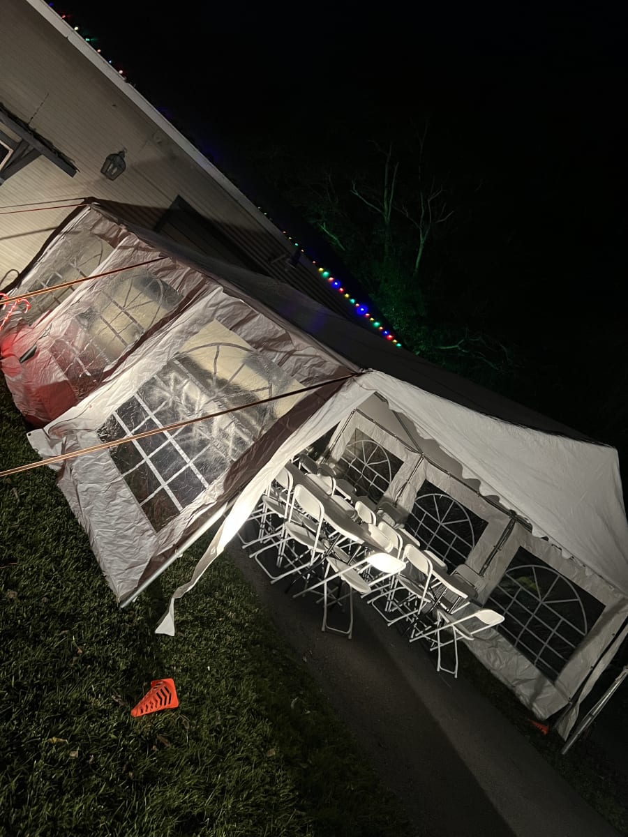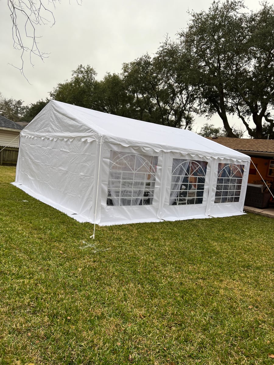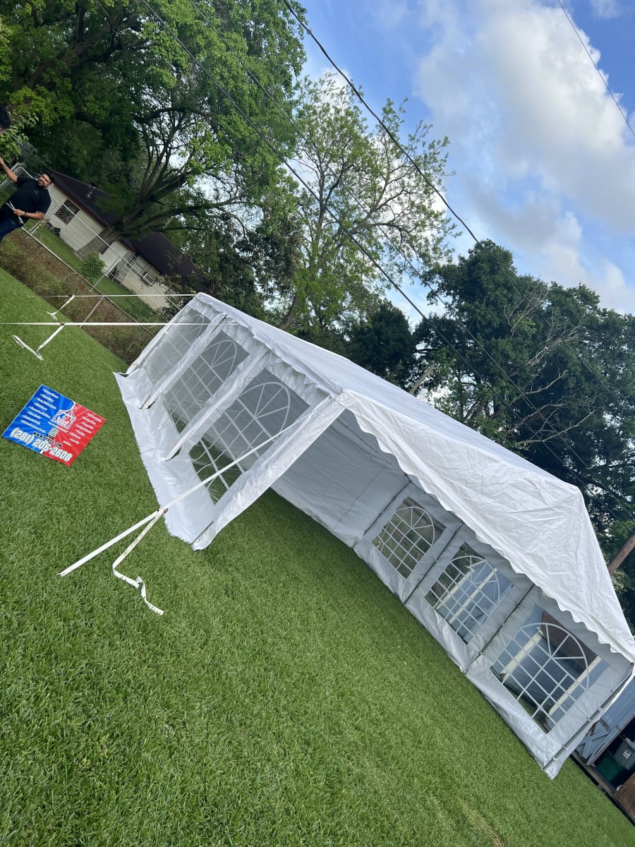This is our 20x20 enclosed commercial pop up tent. It is designed for both indoor and outdoor use. It measures 20 feet wide and 20 feet long, providing ample space for various activities such as camping, outdoor events, and trade shows. The tent features windows and walls that fully enclose the interior, offering protection from the elements such as wind, rain, and sun. The tent is made from durable materials, such as waterproof fabric and sturdy metal poles, ensuring it can withstand various weather conditions. The enclosed design allows for privacy and a controlled environment, making it suitable for a wide range of activities.This Tent can be setup virtually anyway on grass or even hard surfaces. Lights can also be added at an additional cost.