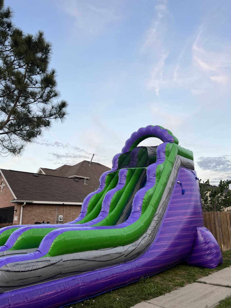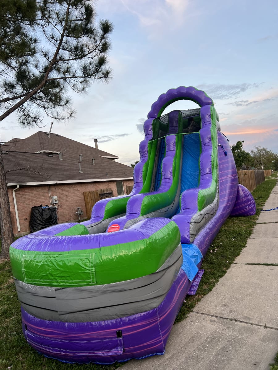 We proudly offer 18 Foot Purple Crush Wet/Dry Waterslide with Pool for rent in Pasadena Tx, South Houston Tx, Houston Tx, Galena Park Tx, Deer Park Tx, La Porte Tx, Pearland Tx, Channelview Tx, Webster Tx, Friendswood Tx, Seabrook Tx, League City Tx, Highlands Tx, Baytown Tx, Kemah Tx, Bellaire Tx, Manvel Tx, Alvin Tx, Bacliff Tx, Dickinson Tx, Fresno Tx, Humble Tx, Missouri City Tx, Crosby Tx, Stafford Tx, Texas City Tx, Santa Fe Tx, Kingwood Tx, Mont Belvieu Tx, Rosharon Tx, Alief Tx, Sugar Land Tx, North Houston Tx, La Marque Tx, Thompsons Tx, Huffman Tx, Hitchcock Tx, Spring Tx, Liverpool Tx, Porter Tx, Barker Tx, Richmond Tx, Katy Tx, Dayton Tx, Danbury Tx, New Caney Tx, Wallisville Tx, Galveston Tx, Cypress Tx, Tomball Tx, Angleton Tx, Conroe Tx, Anahuac Tx, Splendora Tx, Hufsmith Tx, Needville Tx, Hankamer Tx, and surrounding communities. Our commitment to punctual service and customer satisfaction means your event will go off without a hitch! 🚚🎉