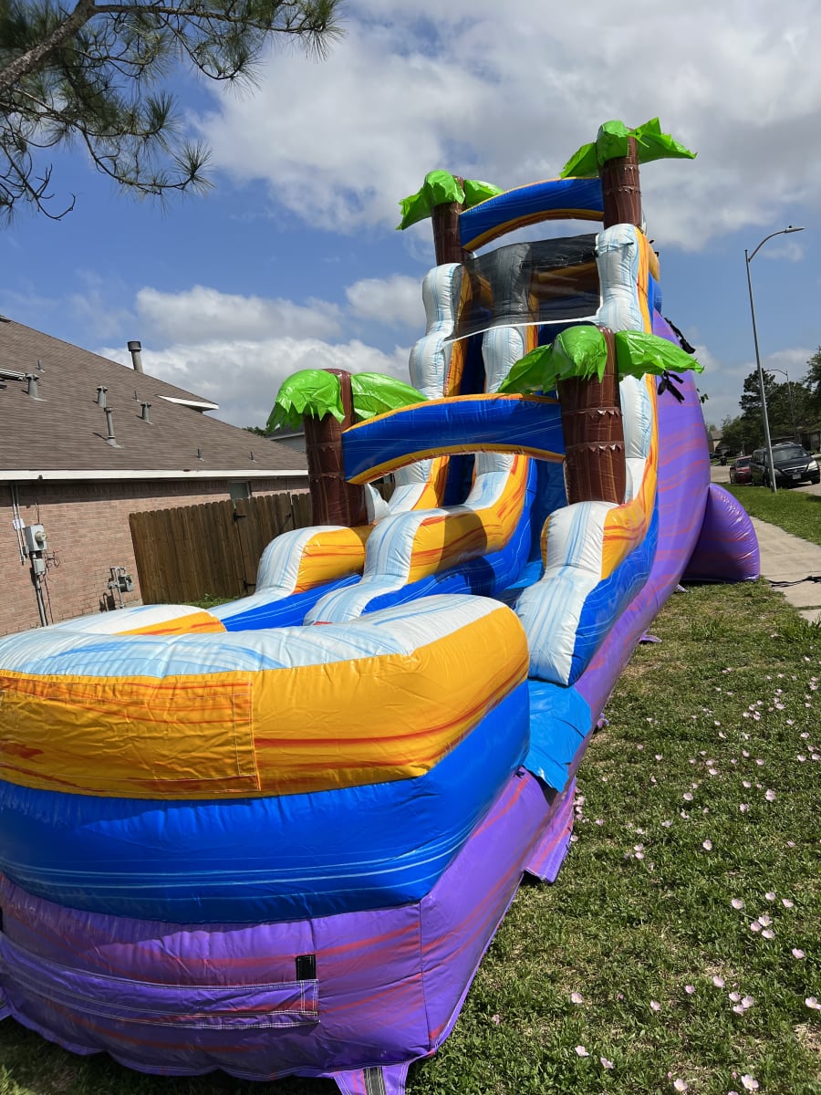 Are you searching for a show-stopping attraction for your next event or party? The 18 Foot Blue Tropical Hawaiian Wet/Dry Waterslide with Pool for rent in Pasadena Tx, South Houston Tx, Houston Tx, Galena Park Tx, Deer Park Tx, La Porte Tx, Pearland Tx, Channelview Tx, Webster Tx, Friendswood Tx, Seabrook Tx, League City Tx, Highlands Tx, Baytown Tx, Kemah Tx, Bellaire Tx, Manvel Tx, Alvin Tx, Bacliff Tx, Dickinson Tx, Fresno Tx, Humble Tx, Missouri City Tx, Crosby Tx, Stafford Tx, Texas City Tx, Santa Fe Tx, Kingwood Tx, Mont Belvieu Tx, Rosharon Tx, Alief Tx, Sugar Land Tx, North Houston Tx, La Marque Tx, Thompsons Tx, Huffman Tx, Hitchcock Tx, Spring Tx, Liverpool Tx, Porter Tx, Barker Tx, Richmond Tx, Katy Tx, Dayton Tx, Danbury Tx, New Caney Tx, Wallisville Tx, Galveston Tx, Cypress Tx, Tomball Tx, Angleton Tx, Conroe Tx, Anahuac Tx, Splendora Tx, Hufsmith Tx, Needville Tx, Hankamer Tx is your ticket to unforgettable memories! 🌊🌴